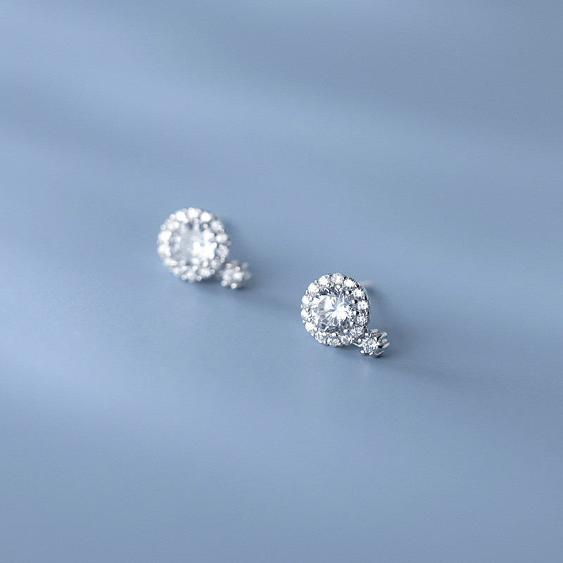 s925 sterling silver rhinestone simple trendy short earrings