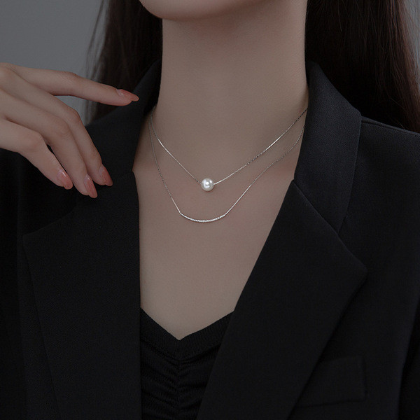 s925 sterling silver chic simple pearl trendy sweet necklace